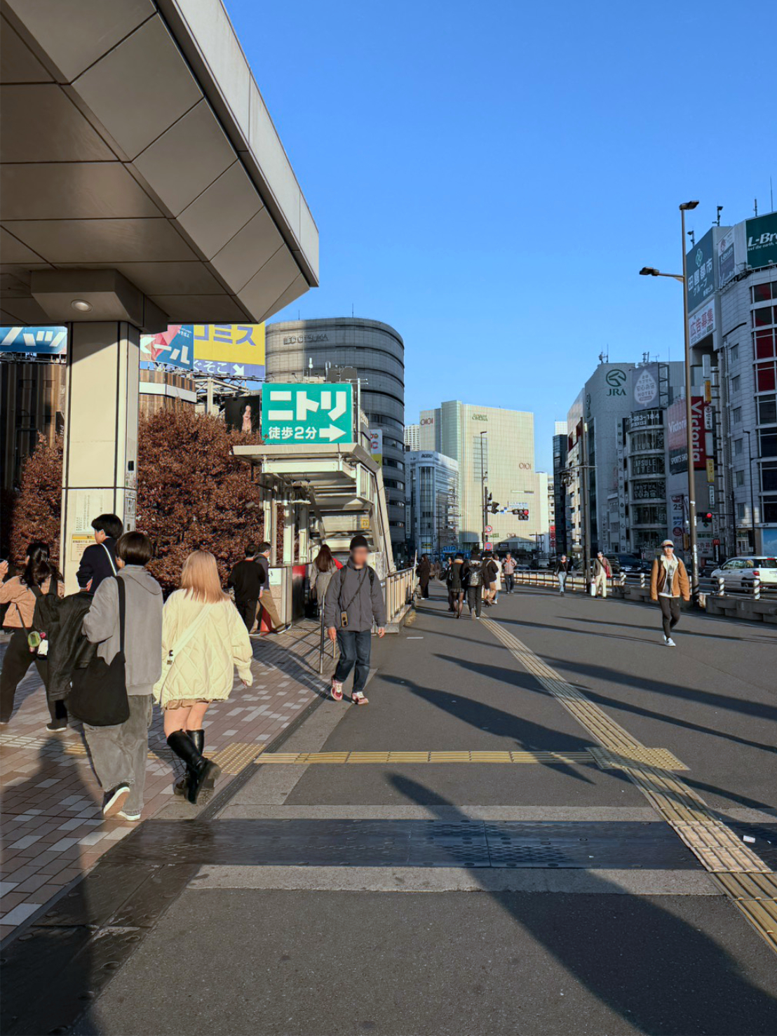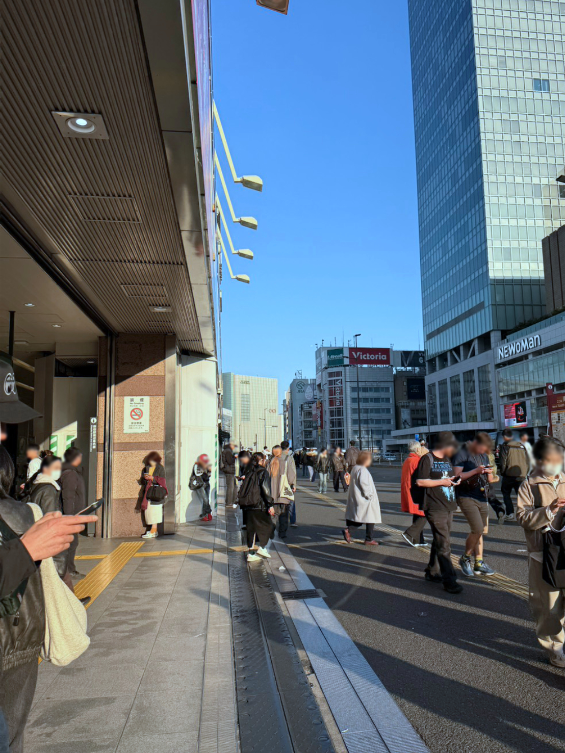 ①JR新宿駅南口を出ます。