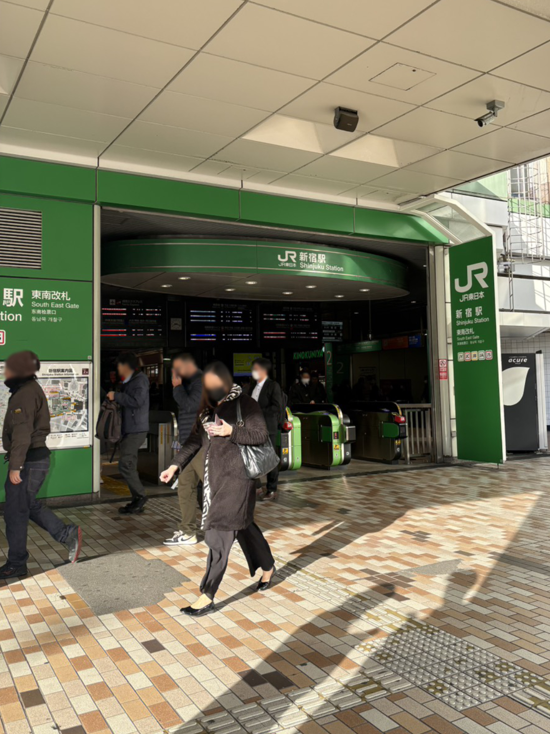 ①JR新宿駅東南口を出ます